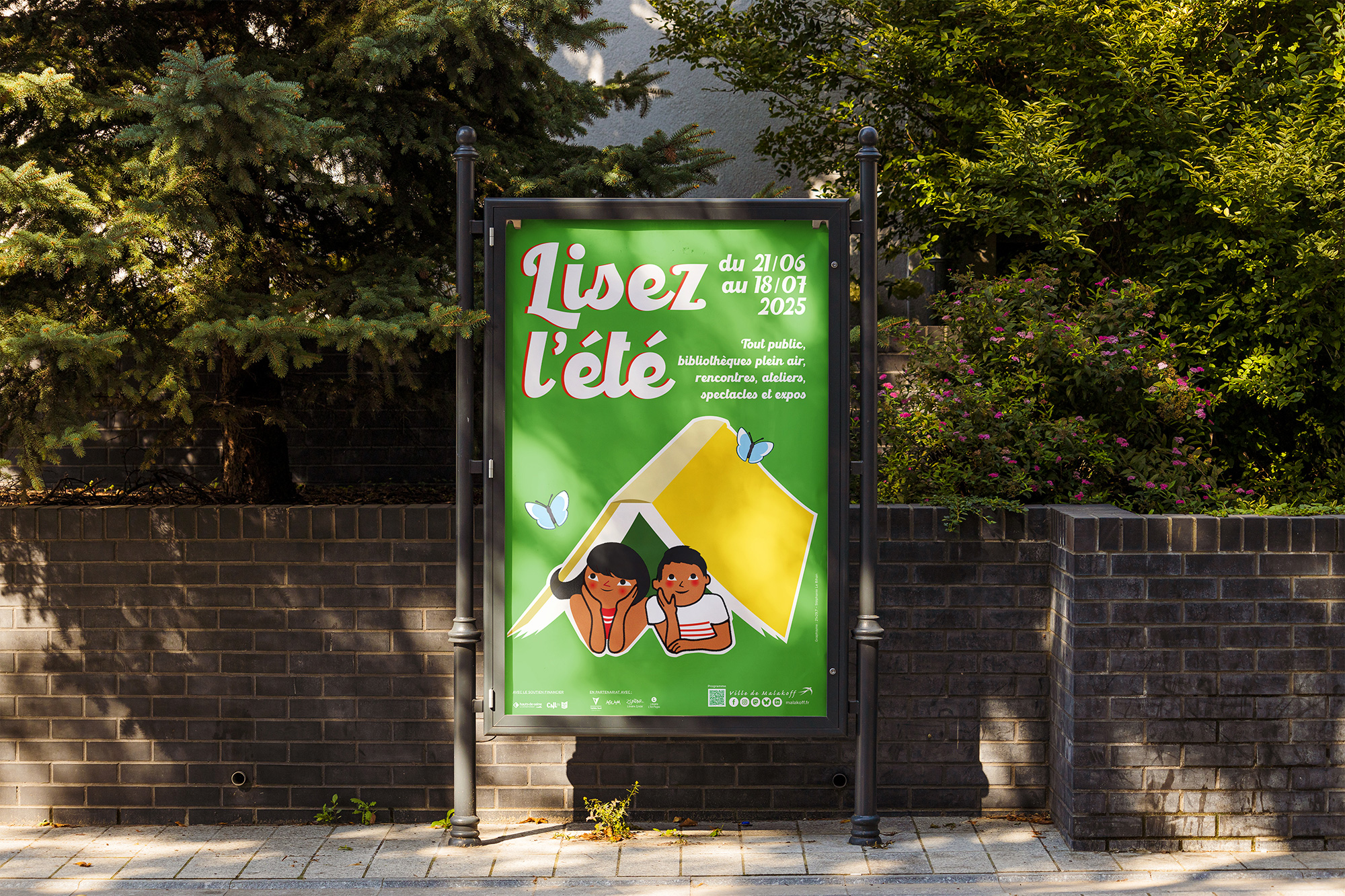 Conception graphique et réalisation d'affiches et de bâches visibles dans toute la ville. Illustrations : Stéphanie Le Bihan.