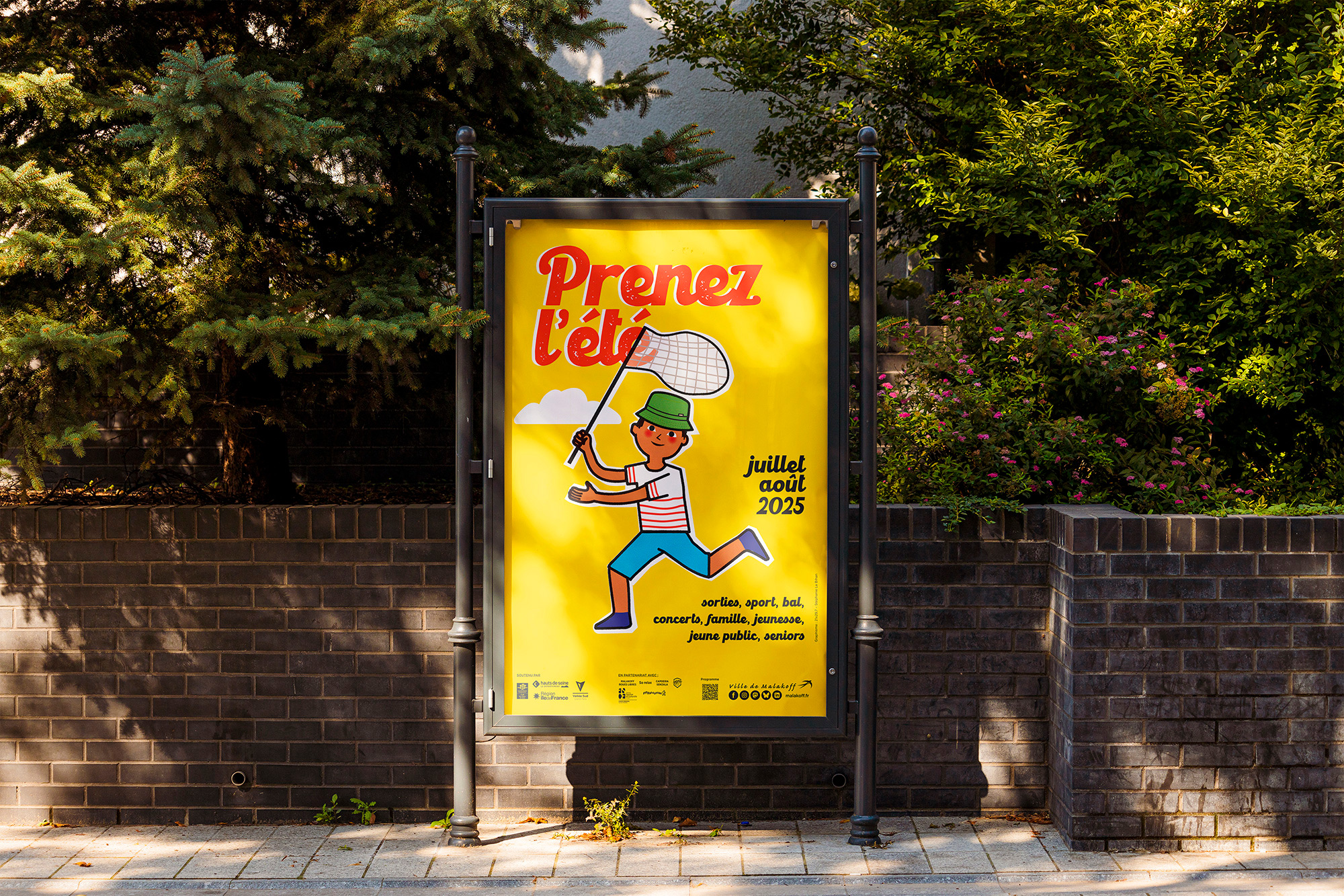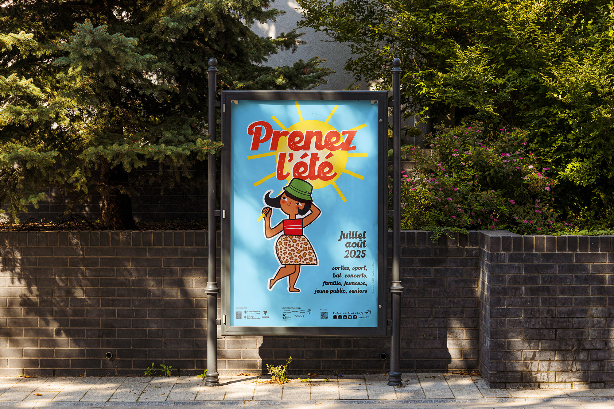 Chaque été, Malakoff lance deux simultanément deux opérations, Prenez l'été et Lisez l'été. Les deux campagnes sont réalisées dans un même style graphique qui est renouvelé chaque année. Exemple de deux millésimes.